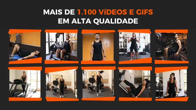 Nosso aplicativo conta com mais de 1000 vídeos de exercícios para treinos em casa e na academia.