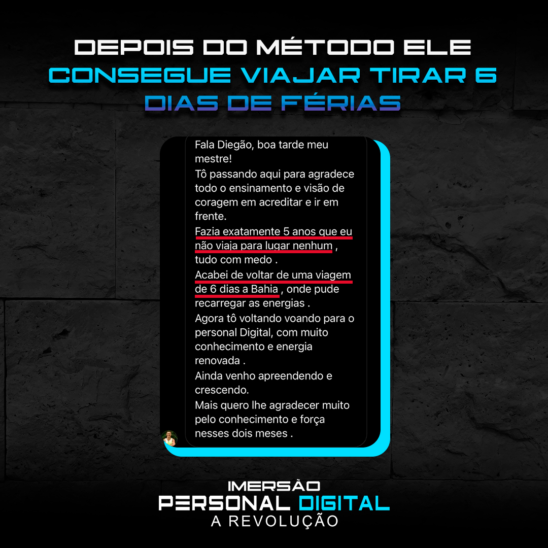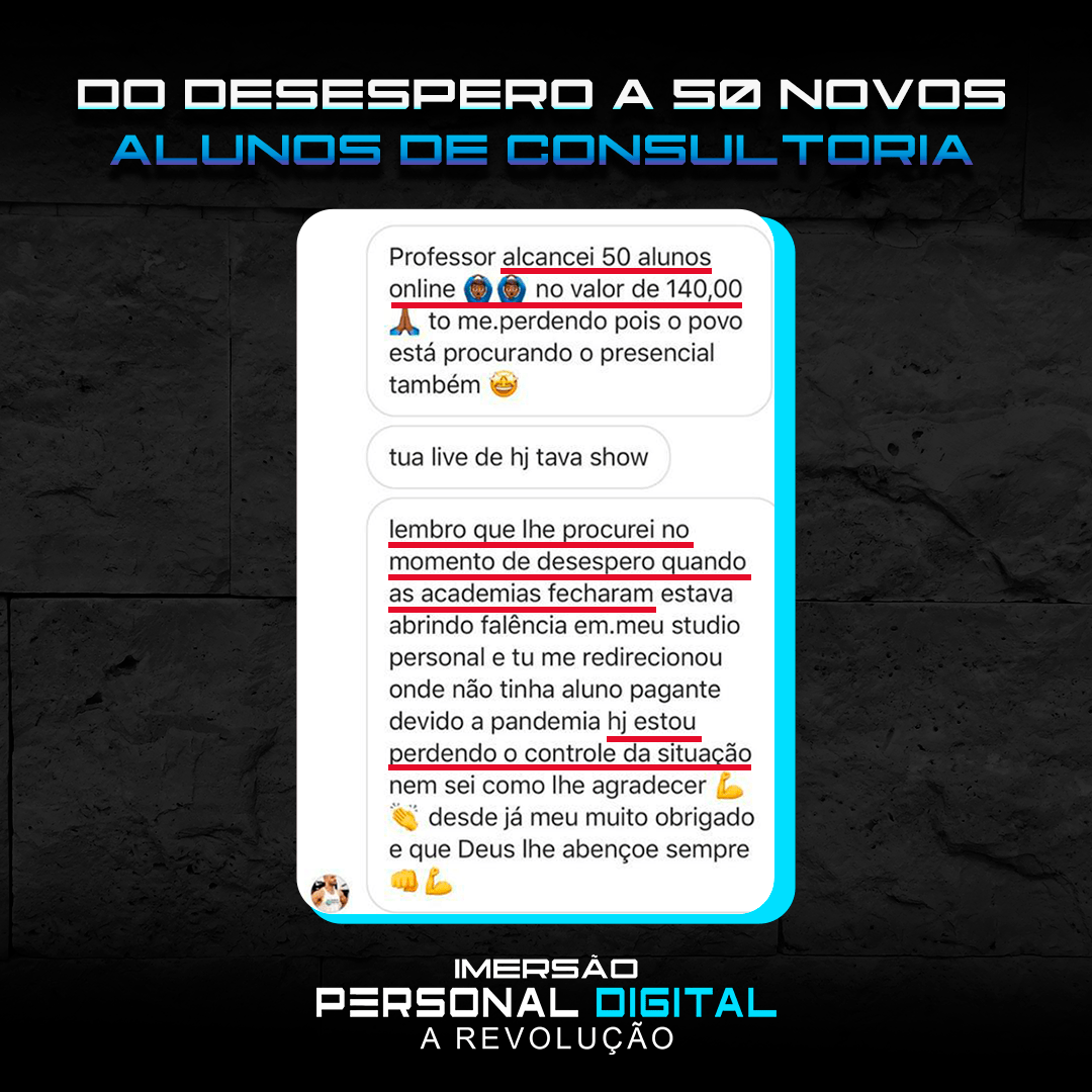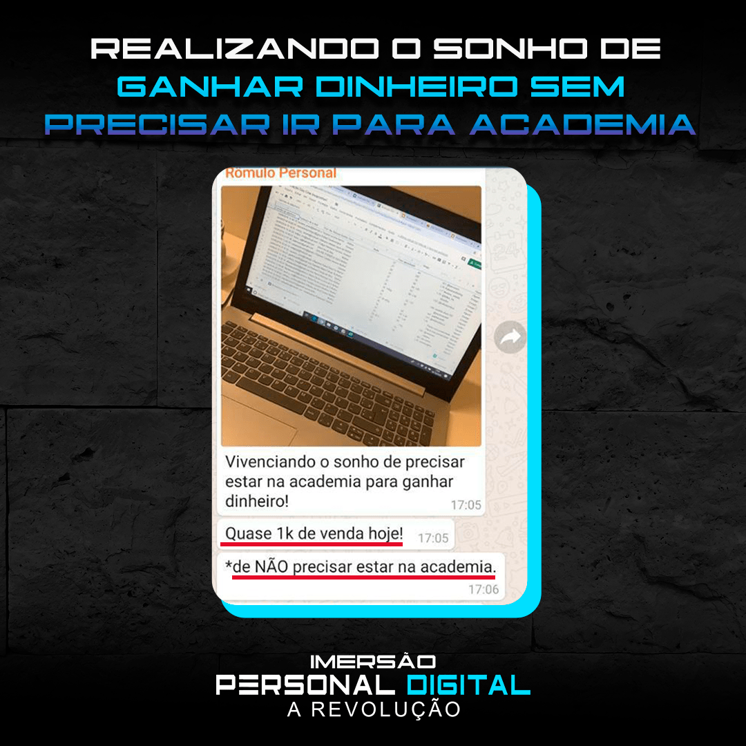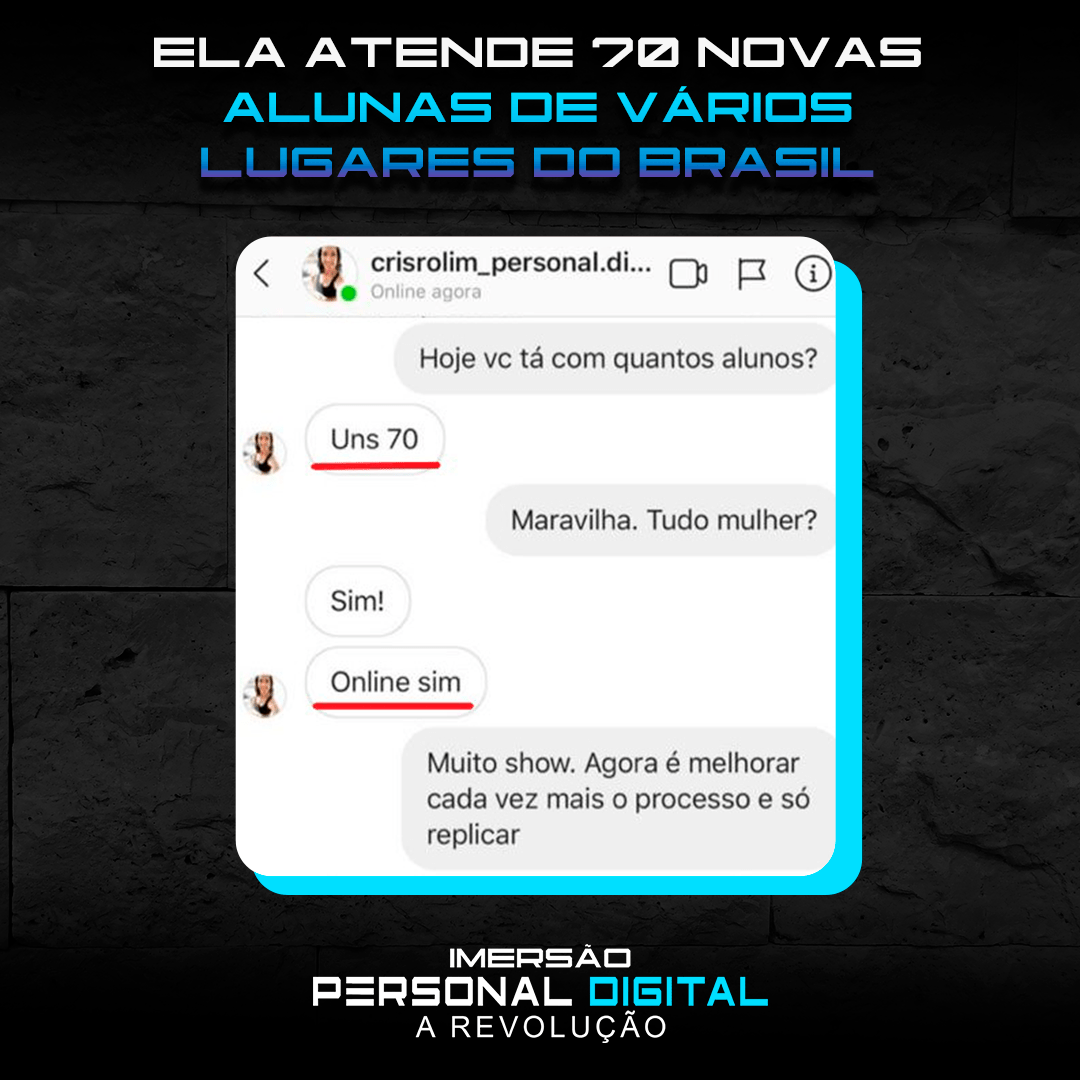 “Só sei de uma coisa: esse Diego Medeiros tinha que ter aparecido na vida da gente antes! Hoje joguei no insta perguntando quem queria que a academia fosse até eles. 80 responderam sim! 32 Vendas convertidas! Já estou até pensando em largar o personal presencial.”