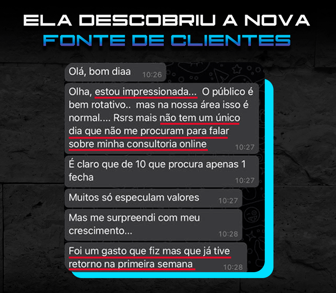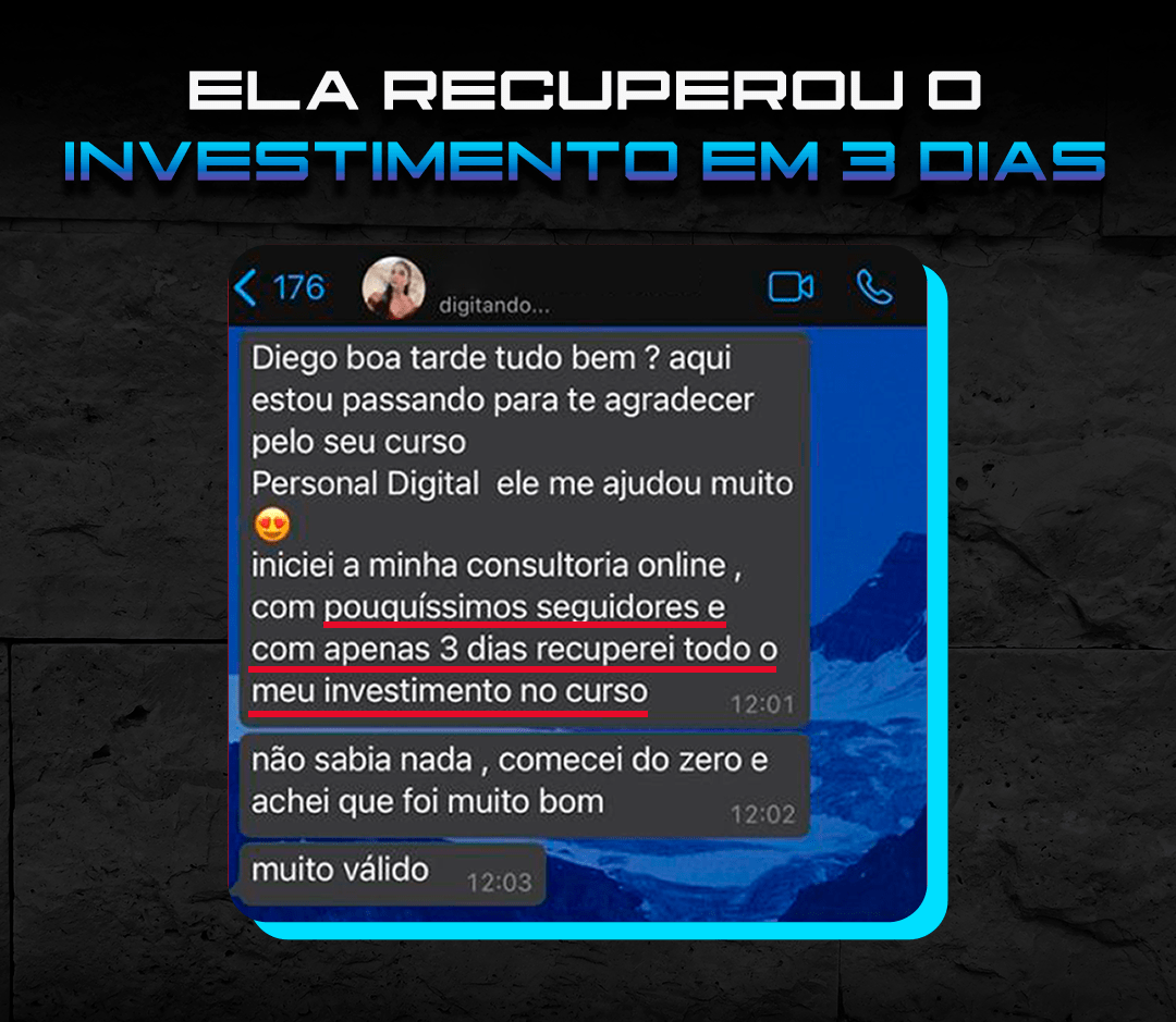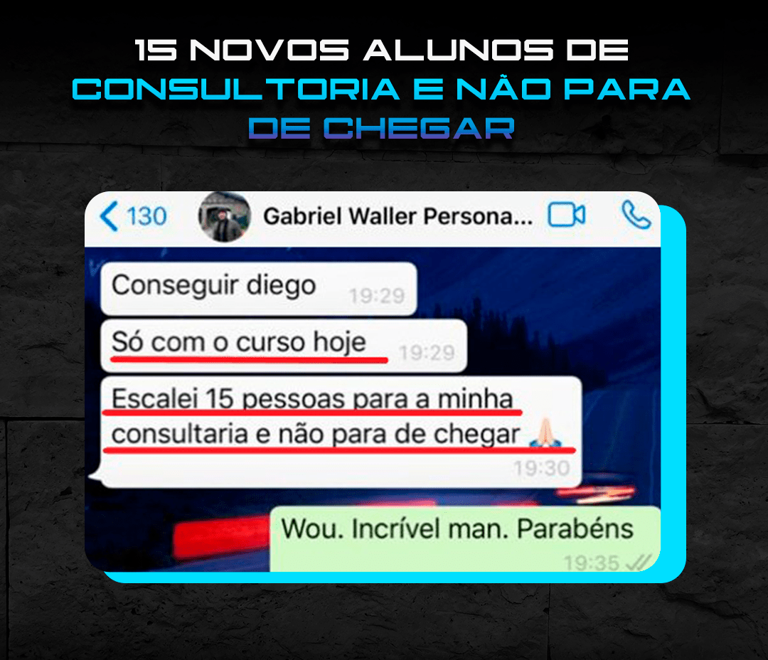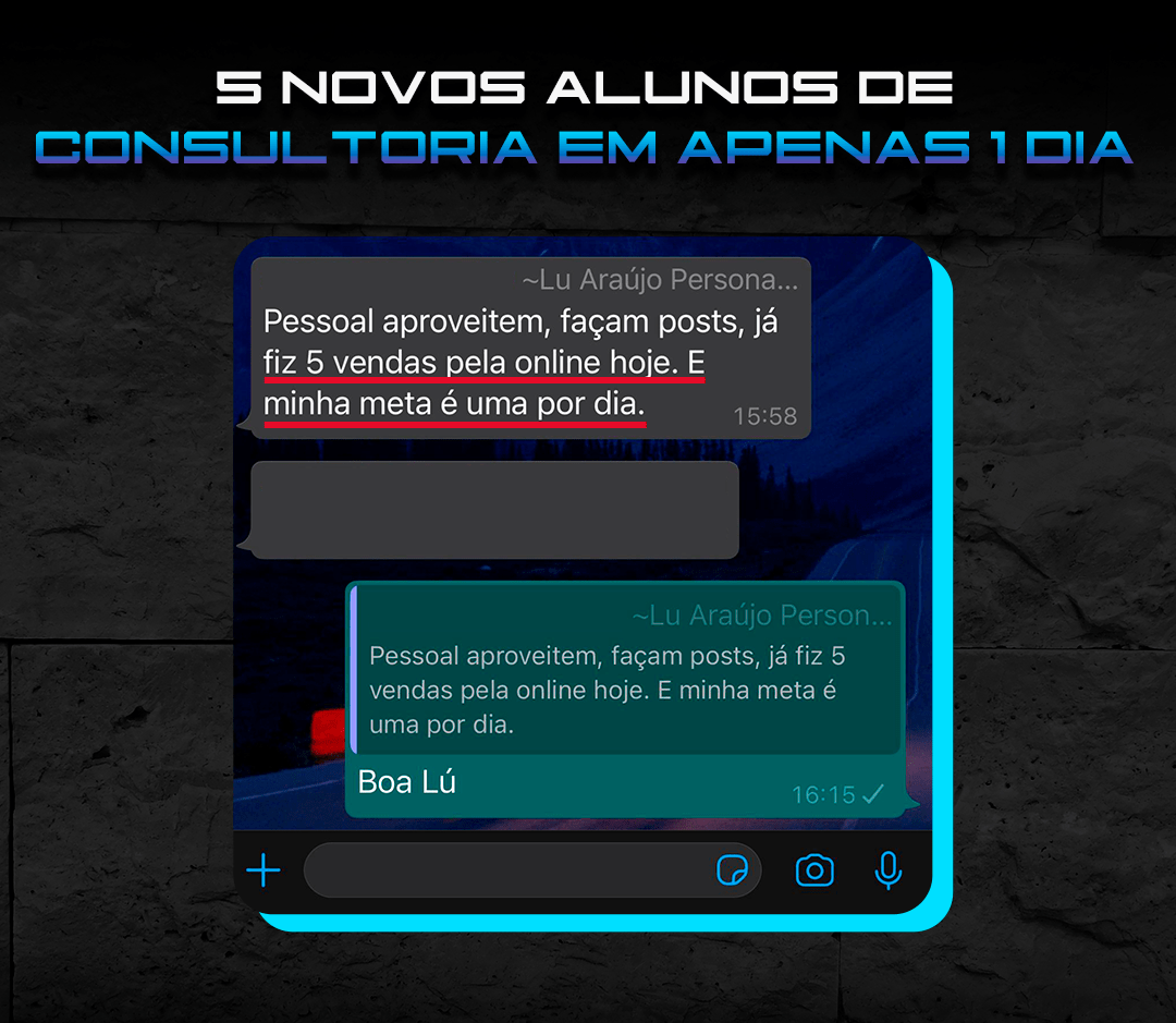 “Só sei de uma coisa: esse Diego Medeiros tinha que ter aparecido na vida da gente antes! Hoje joguei no insta perguntando quem queria que a academia fosse até eles. 80 responderam sim! 32 Vendas convertidas! Já estou até pensando em largar o personal presencial.”