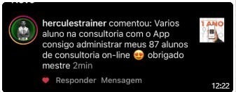 O Aplicativo reúne tudo o que você precisa para prescrever treinos a distância. Temos a MAIOR avaliação de todas as plataformas. Os alunos amam!